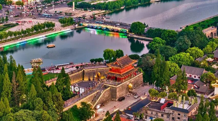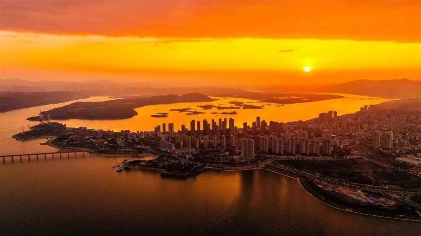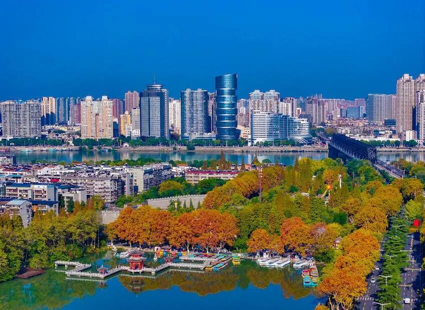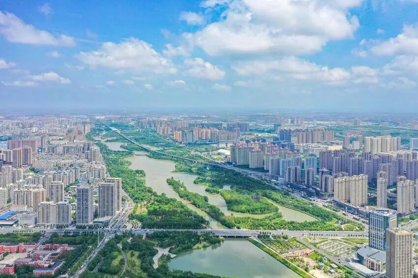 碧水蓝天,航拍老澴河环绕的孝感城区风光无限