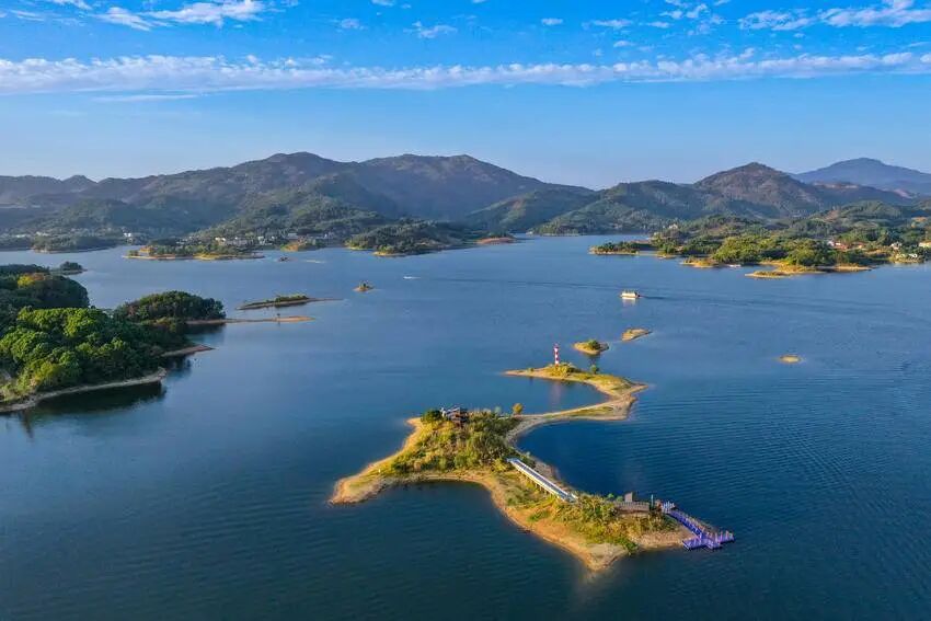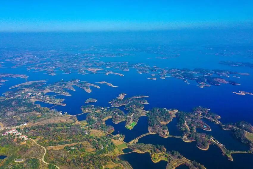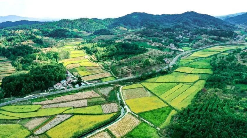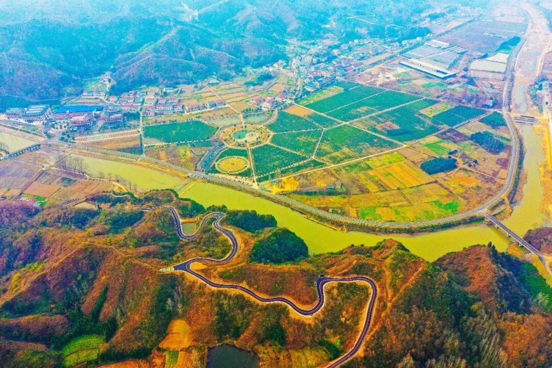 俯瞰谷城乡村旅游公路环绕的玉皇剑生态休闲谷