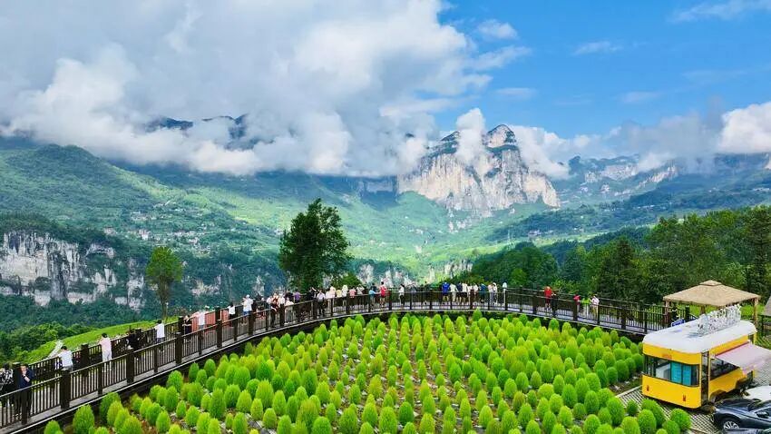 恩施市屯堡乡马者村,蓝天白云,青山叠嶂,吸引众多游客前来拍照打卡