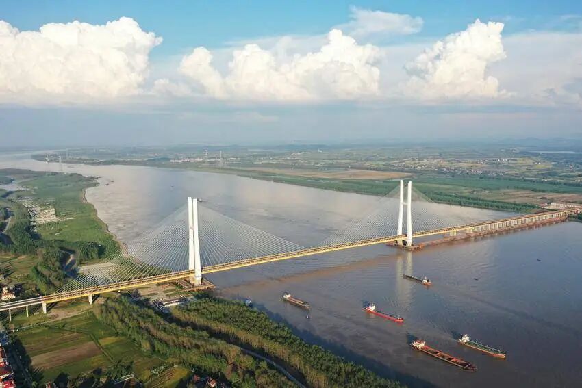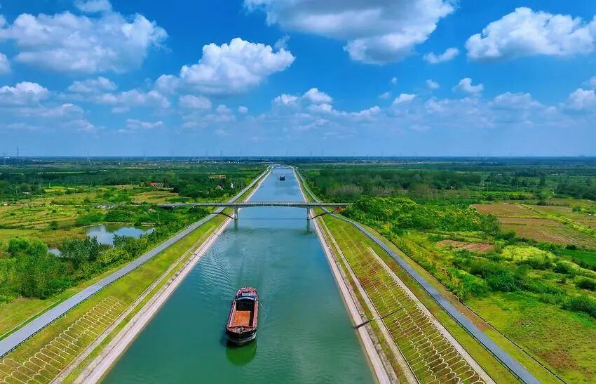 在荆门市沙洋县引江济汉工程毛李镇段,运输各类物资的货船来回穿梭。