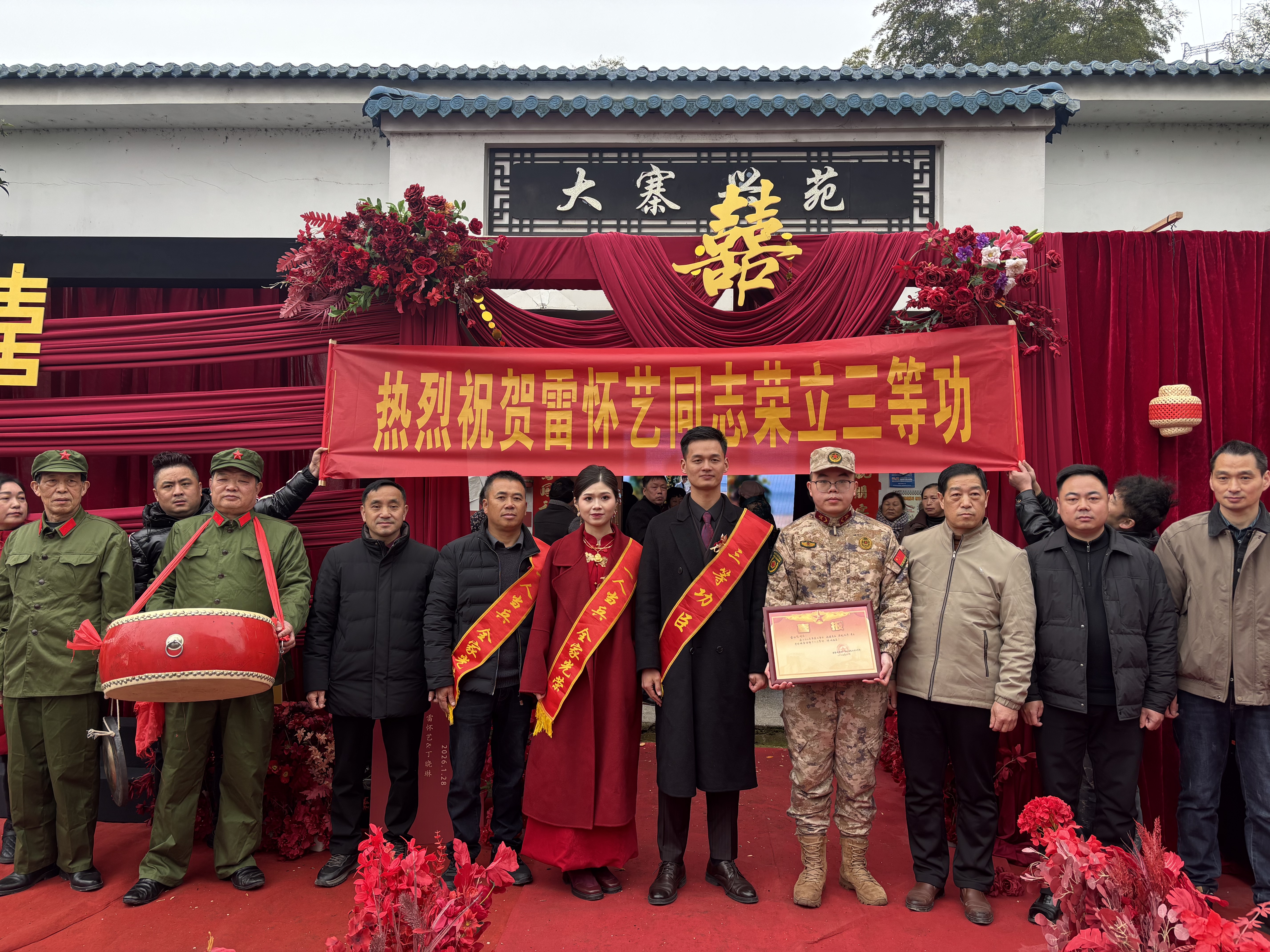 1月28日,县退役军人事务局联合县人武部、相关乡镇组成报喜团,专程将三等功喜报送到了现役军人雷怀艺的婚礼现场。这份承载着军人荣耀的“贺礼”,让婚礼现场更添荣光,有力弘扬了拥军优属的优良传统。