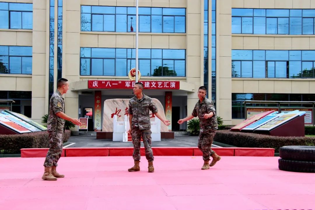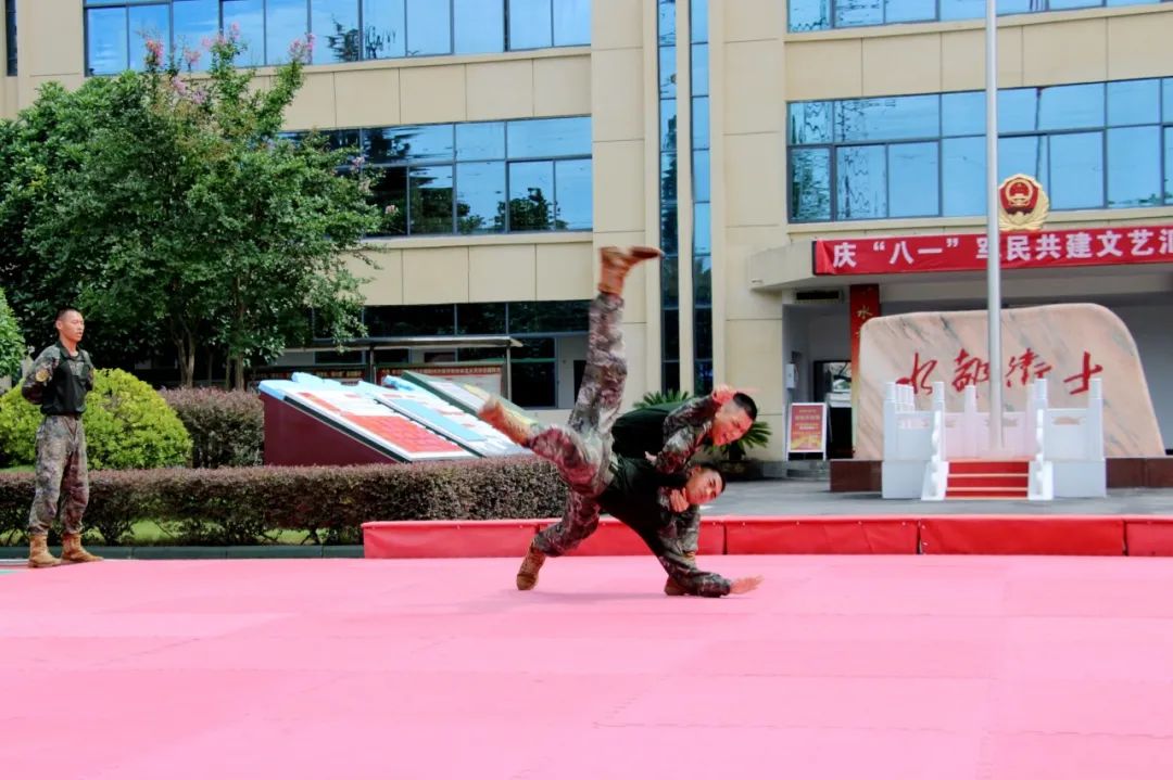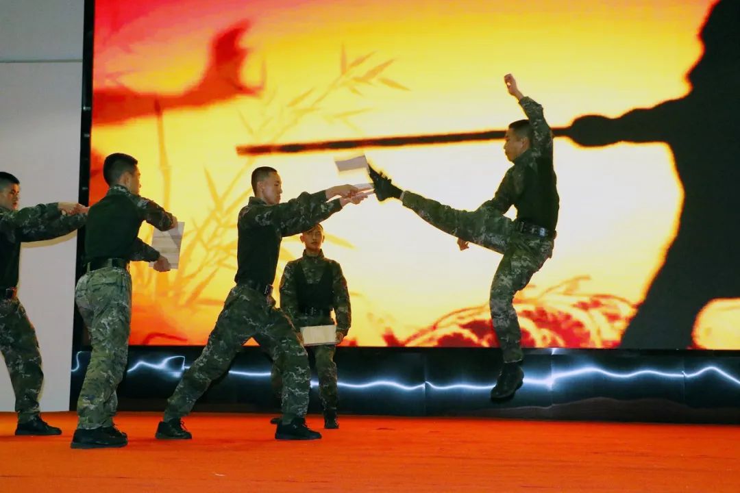 伴随着响亮的口号,武警官兵带来擒敌术和刺杀演示,迅猛有力的军事动作,充分展现了当代军人听党话、跟党走的精神风貌和不畏强敌的血性虎气。