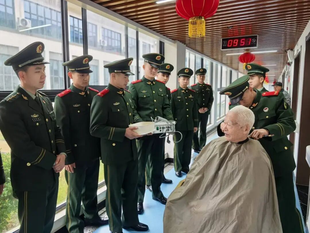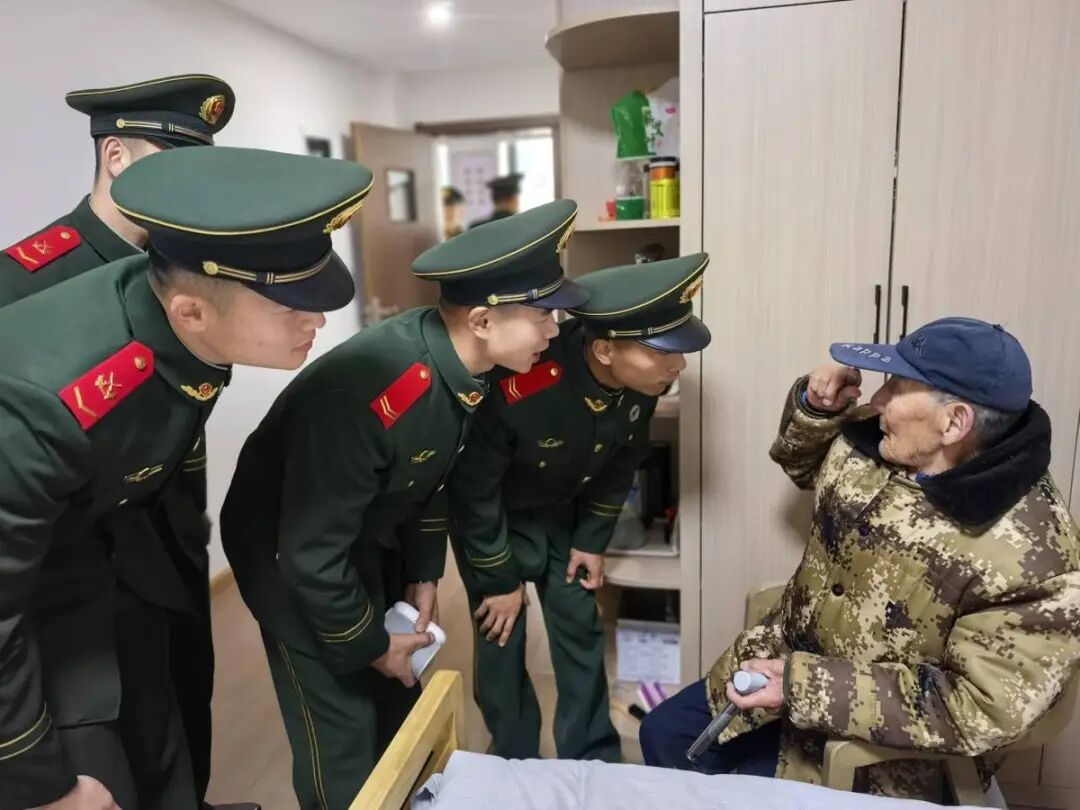 当天上午,官兵们为光荣院送来大米、食用油、水果等慰问物资,并分组开展志愿服务。理发小组的官兵拿出工具,耐心询问老人们的需求,手法娴熟地为他们修剪头发;医疗小组的卫生员支起便携设备,细心地为老人测量血压,关切地询问身体状况,叮嘱春季保健注意事项;卫生清扫小组则拿起扫帚、抹布,认真打扫院内公共区域和老人房间,让居住环境更加整洁明亮。细致入微的服务让老人们倍感温暖。