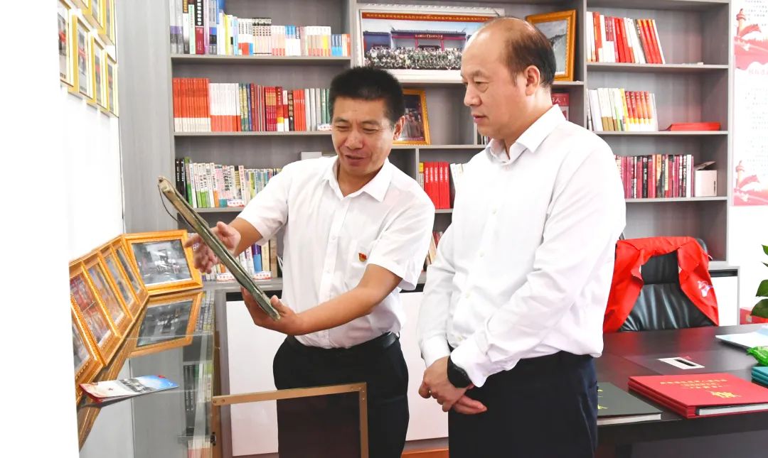 ▲湖北省退役军人事务厅党组书记、厅长杨爱东(右)到随县新街镇河源店村“老兵之家”调研