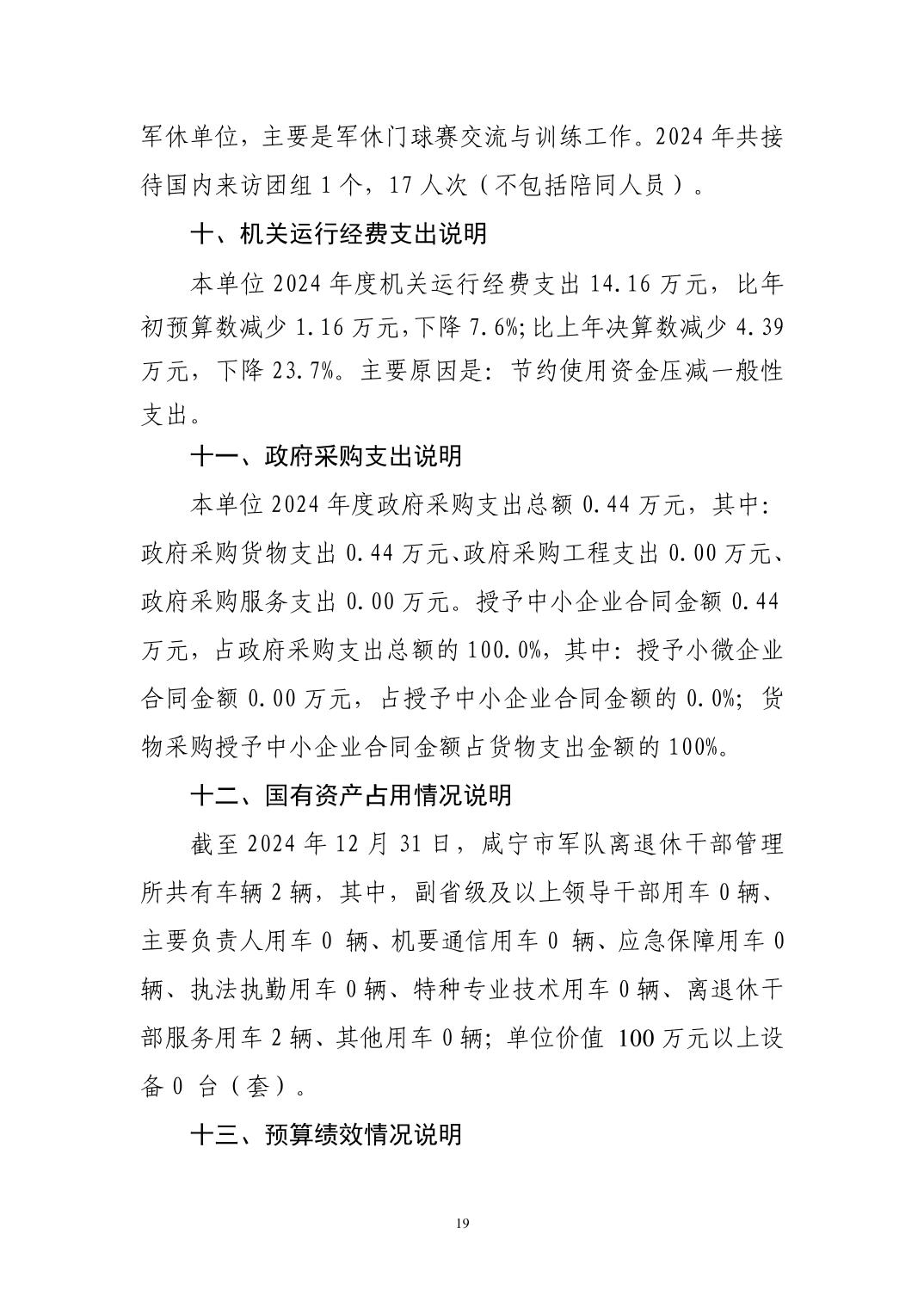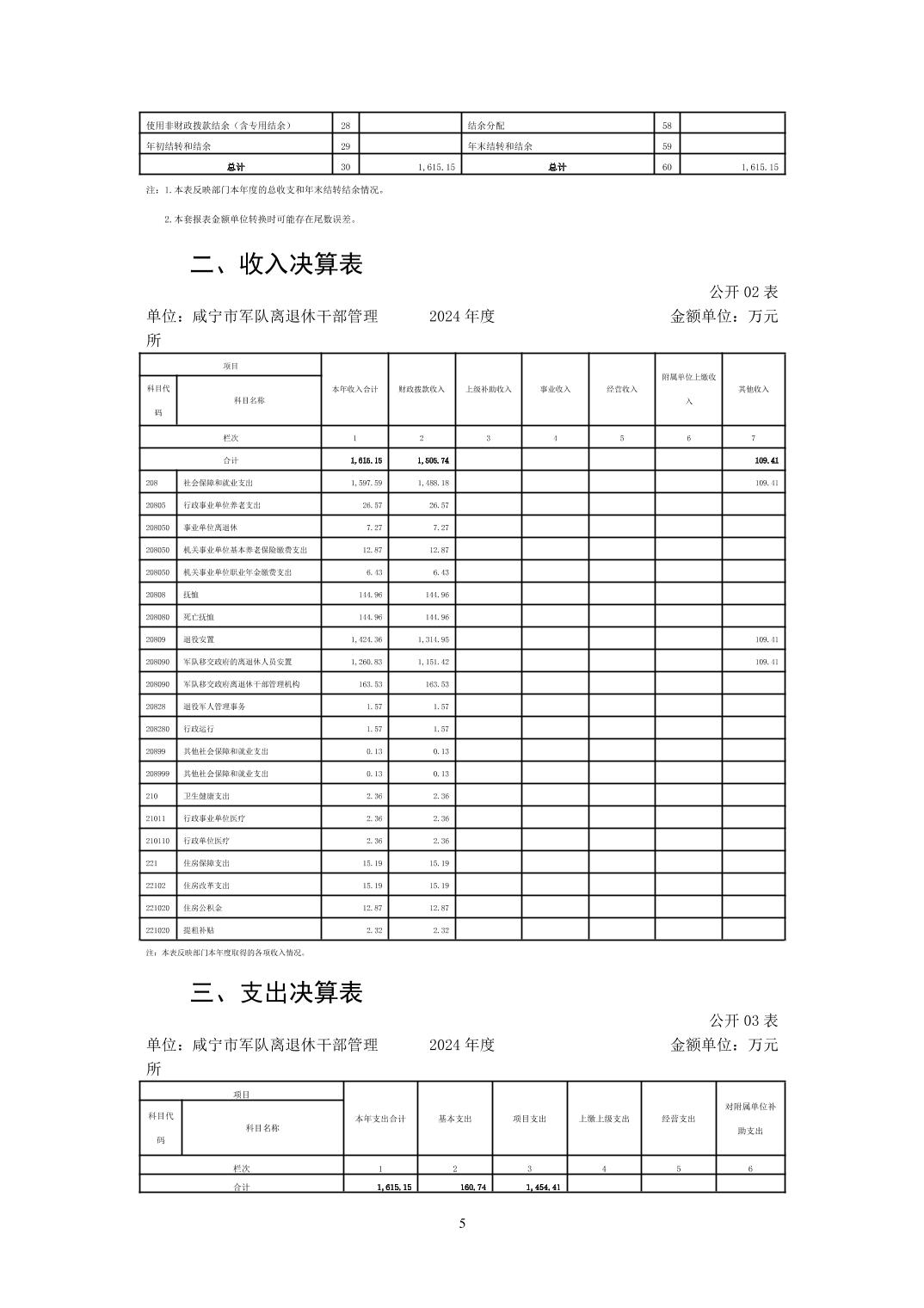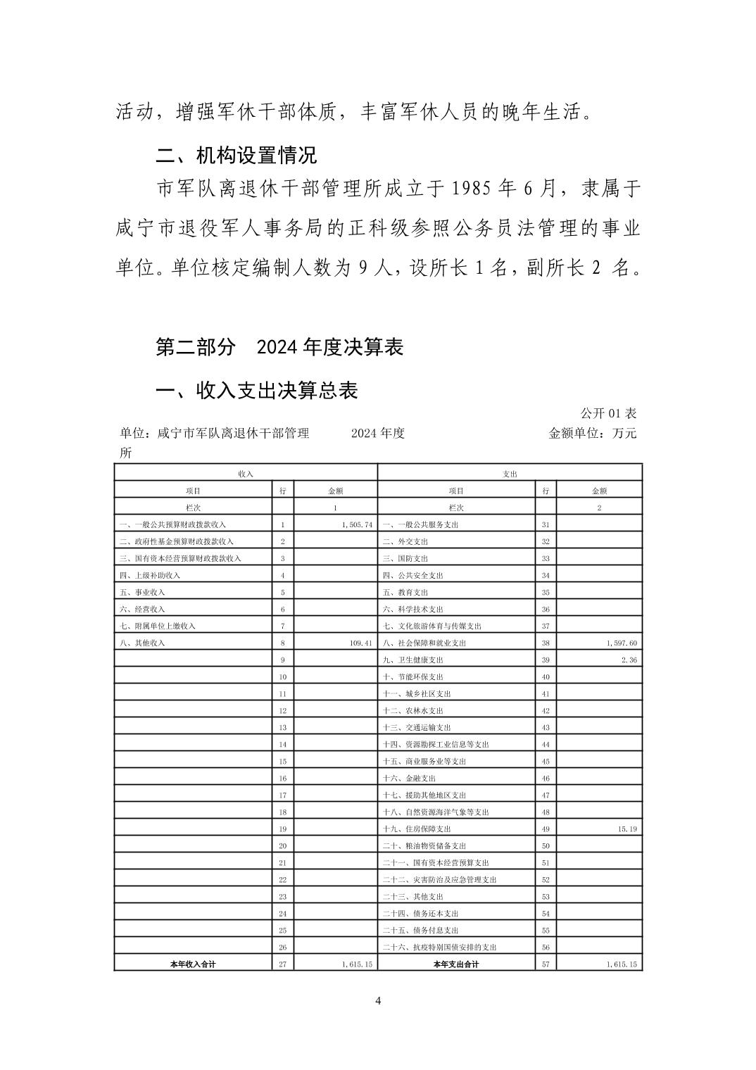 名       称: 咸宁市军队离退休干部管理所2024年决算公开 发布日期: 2025年11月01日