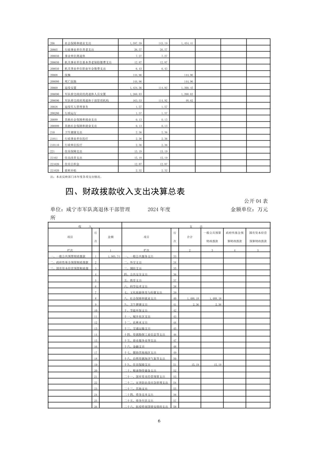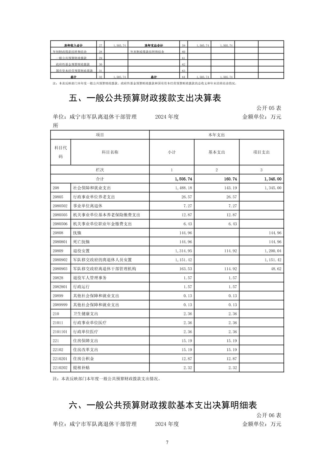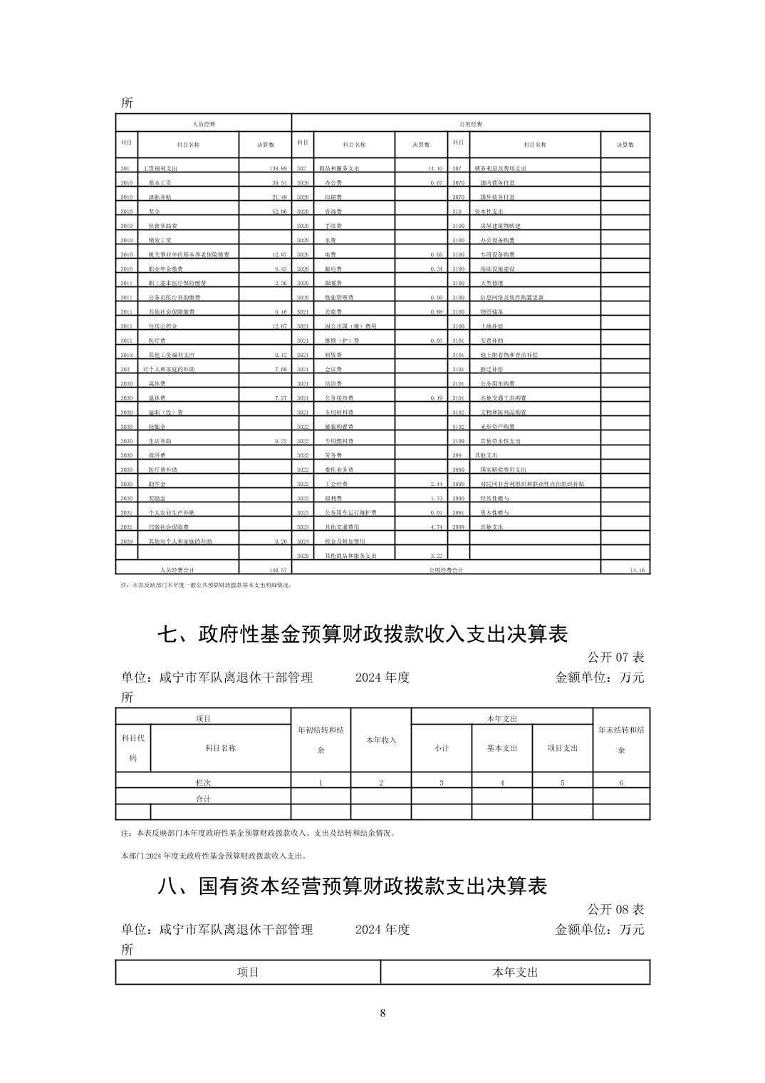 名       称: 咸宁市军队离退休干部管理所2024年决算公开 发布日期: 2025年11月01日