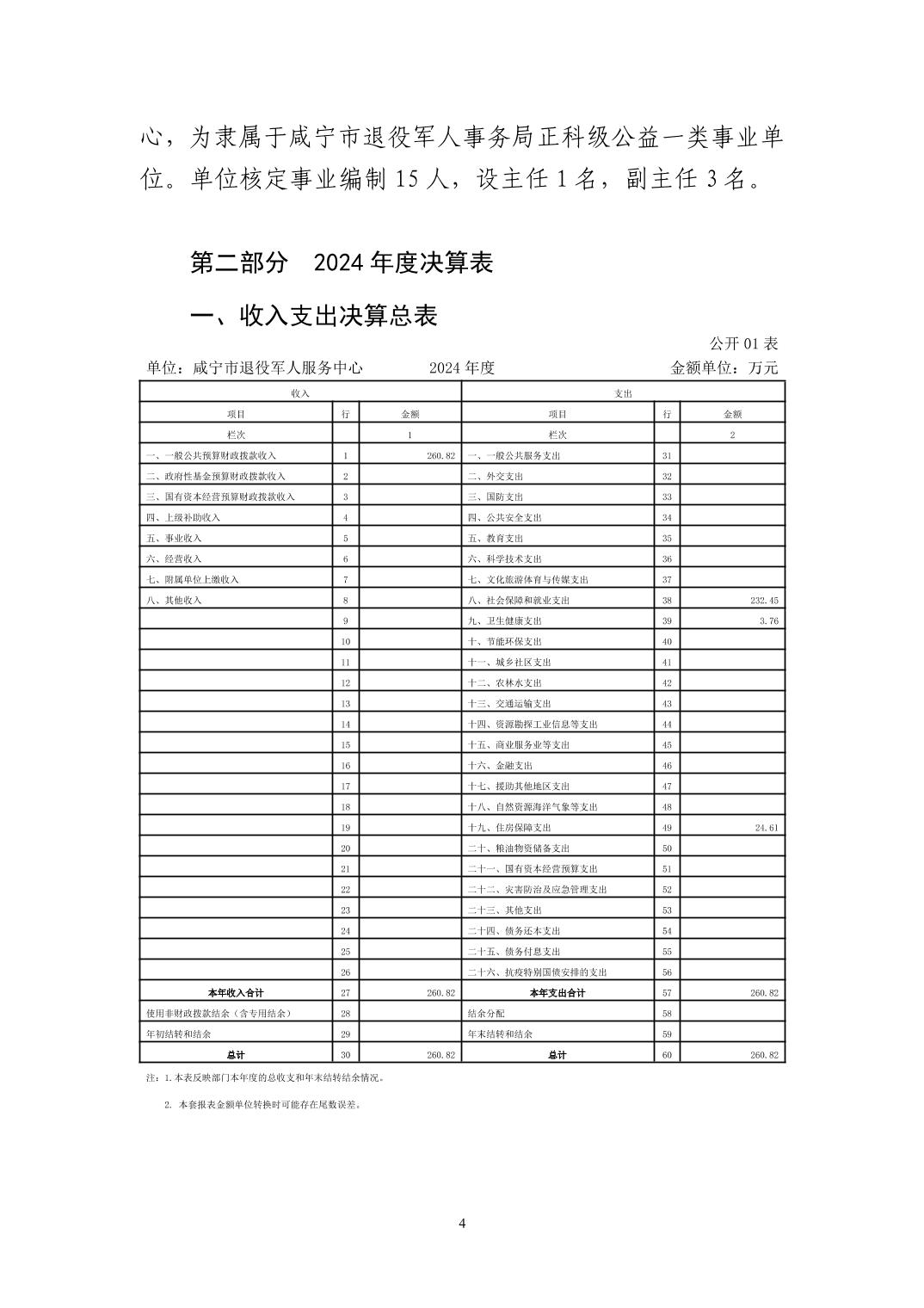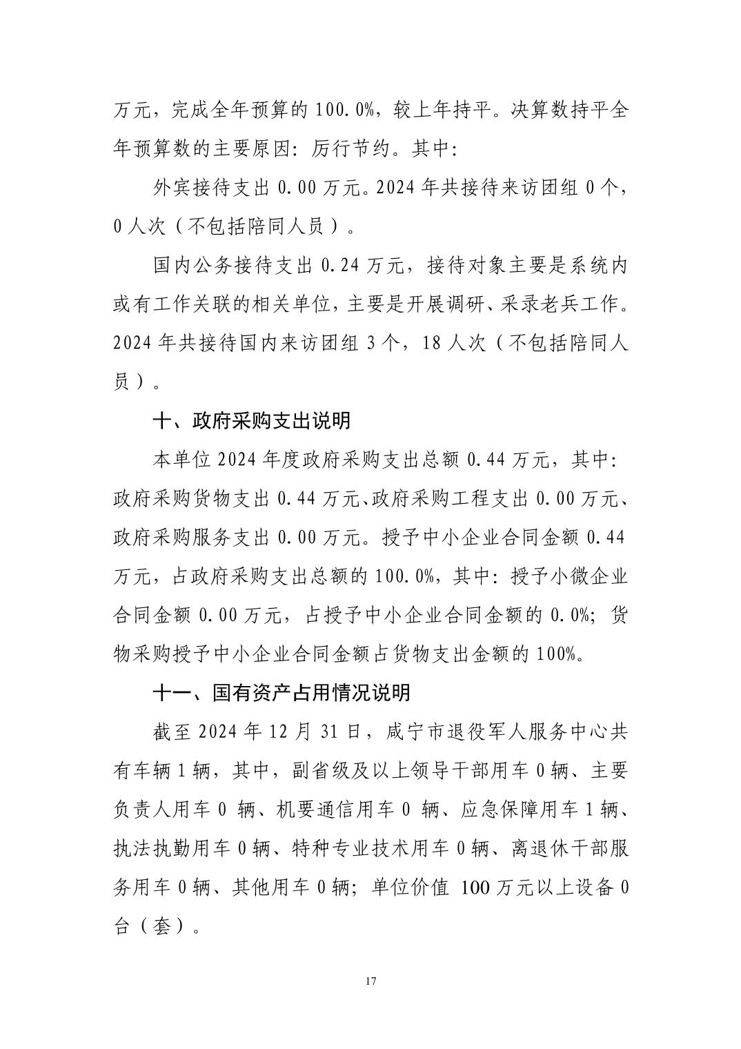 名       称: 咸宁市退役军人服务中心2024年决算公开 发布日期: 2025年11月01日