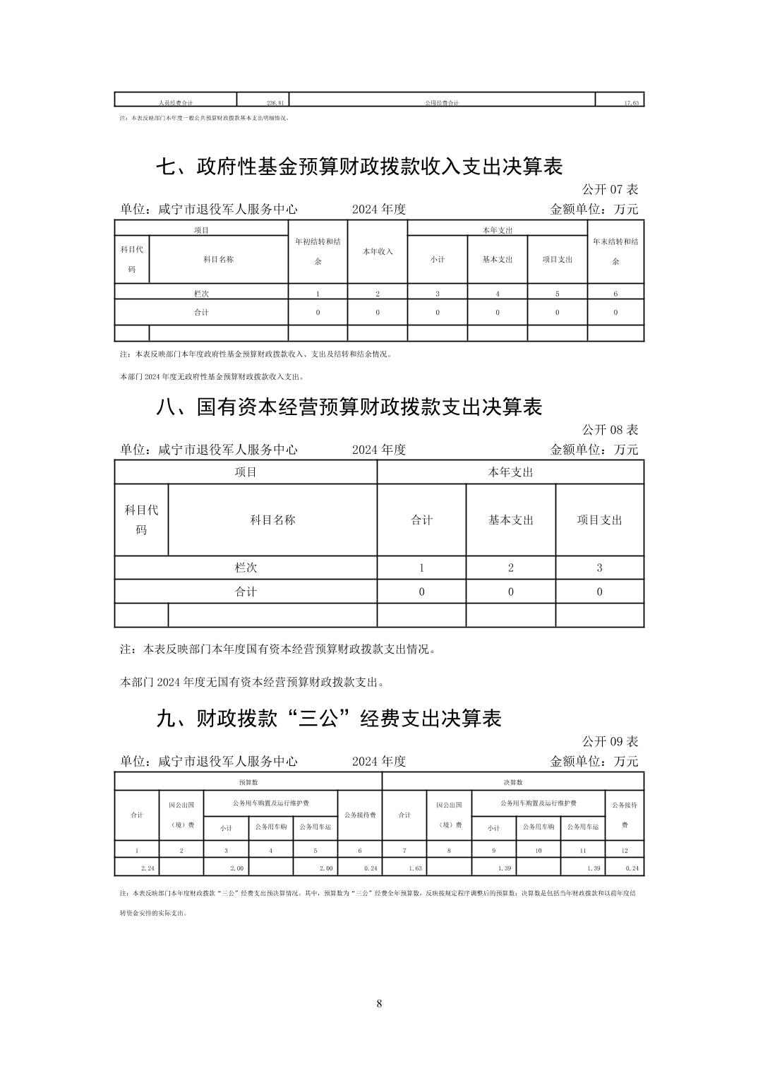 咸宁市退役军人服务中心2024年决算公开