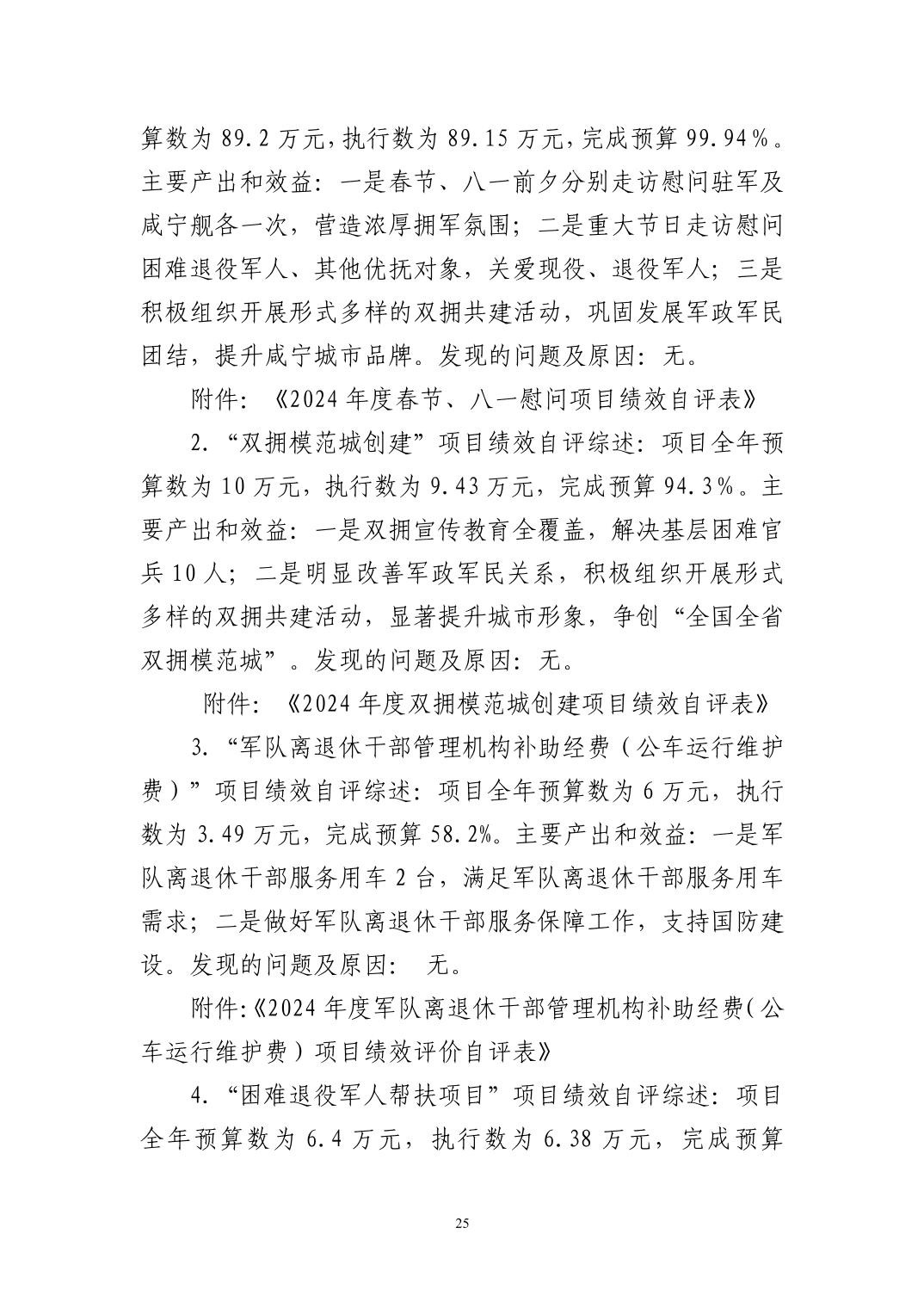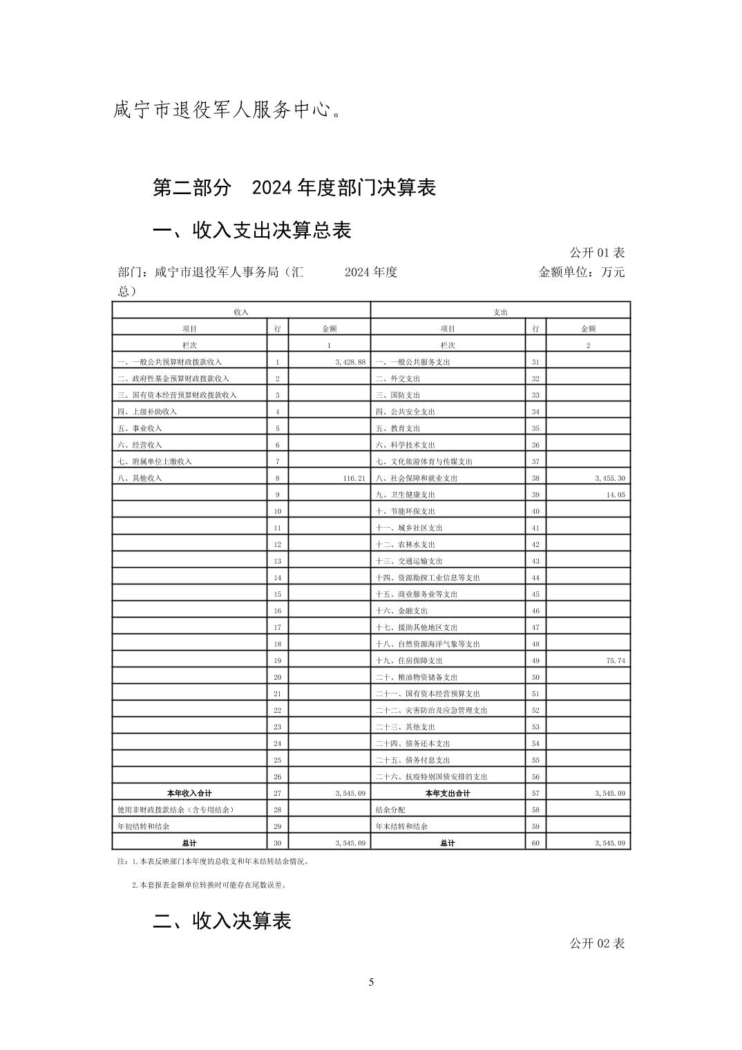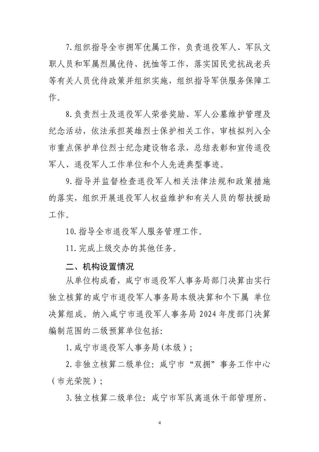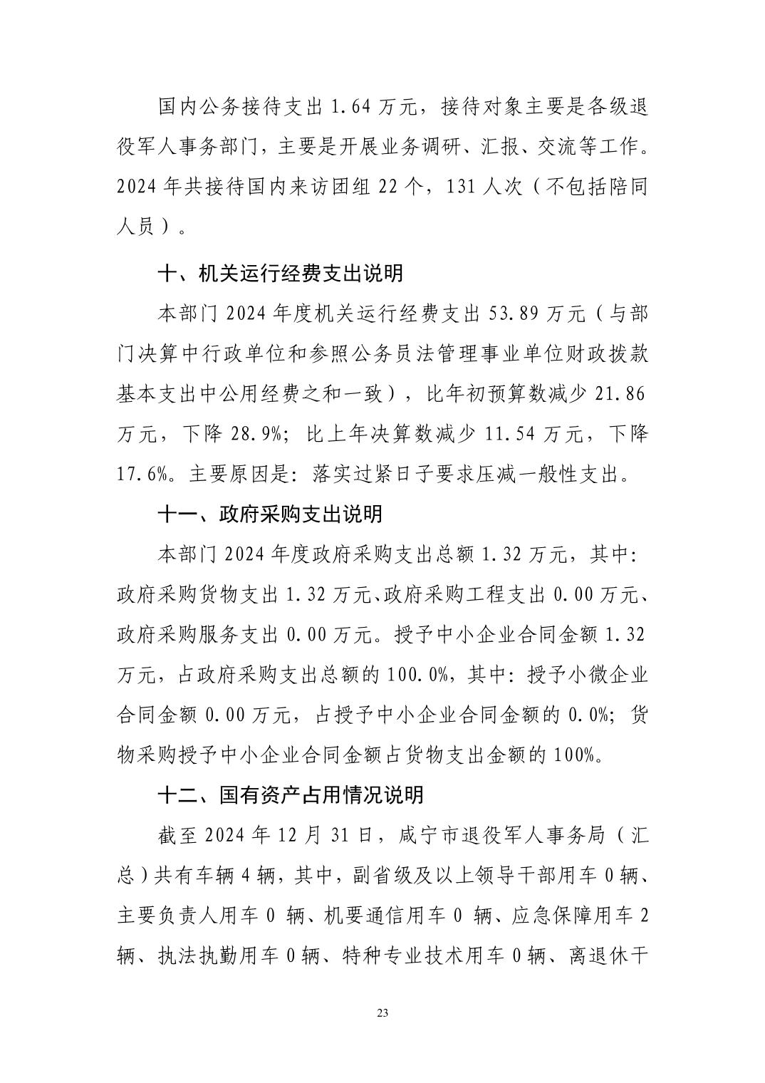 名       称: 咸宁市退役军人事务局(汇总)2024年部门决算公开 发布日期: 2025年11月01日