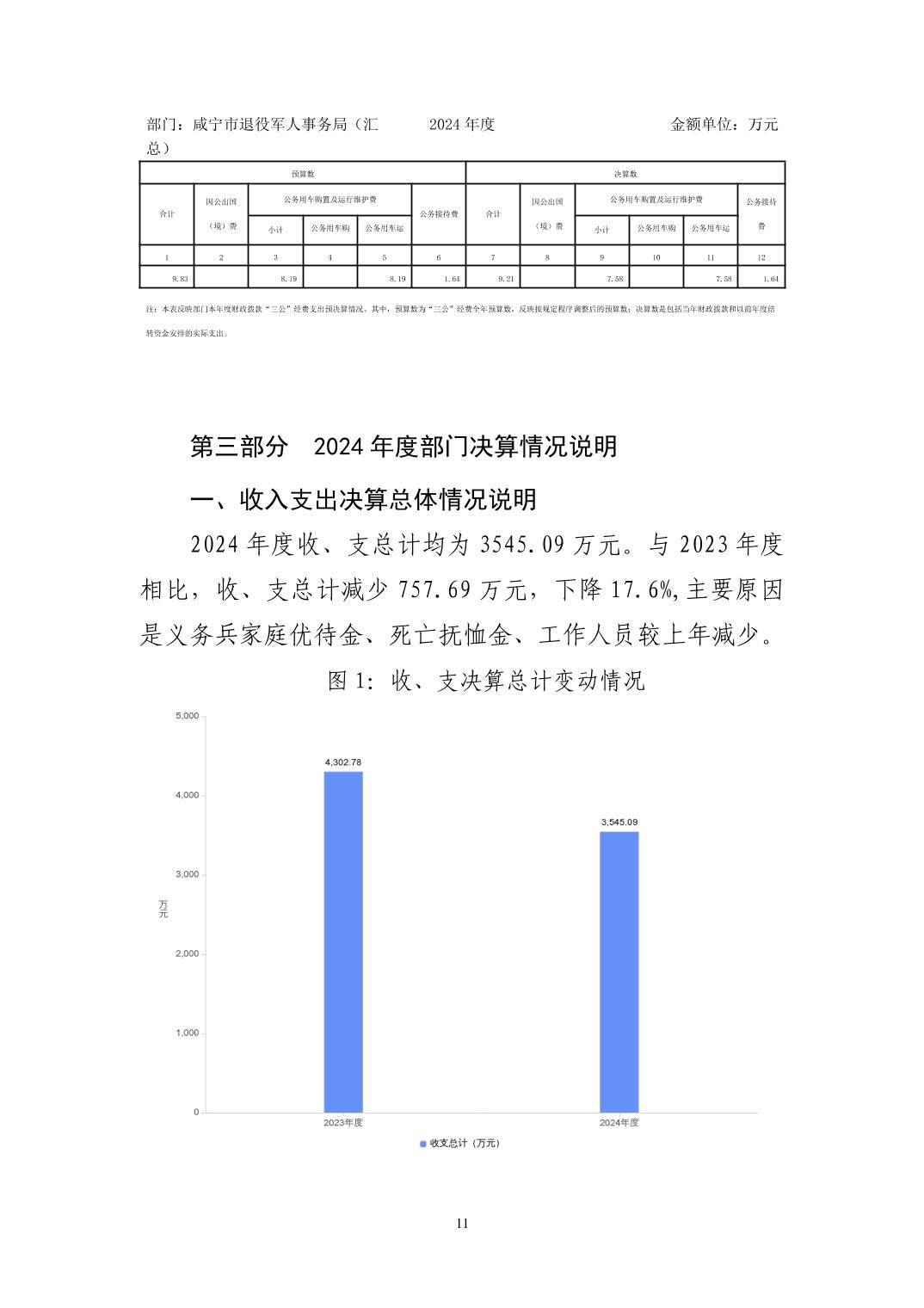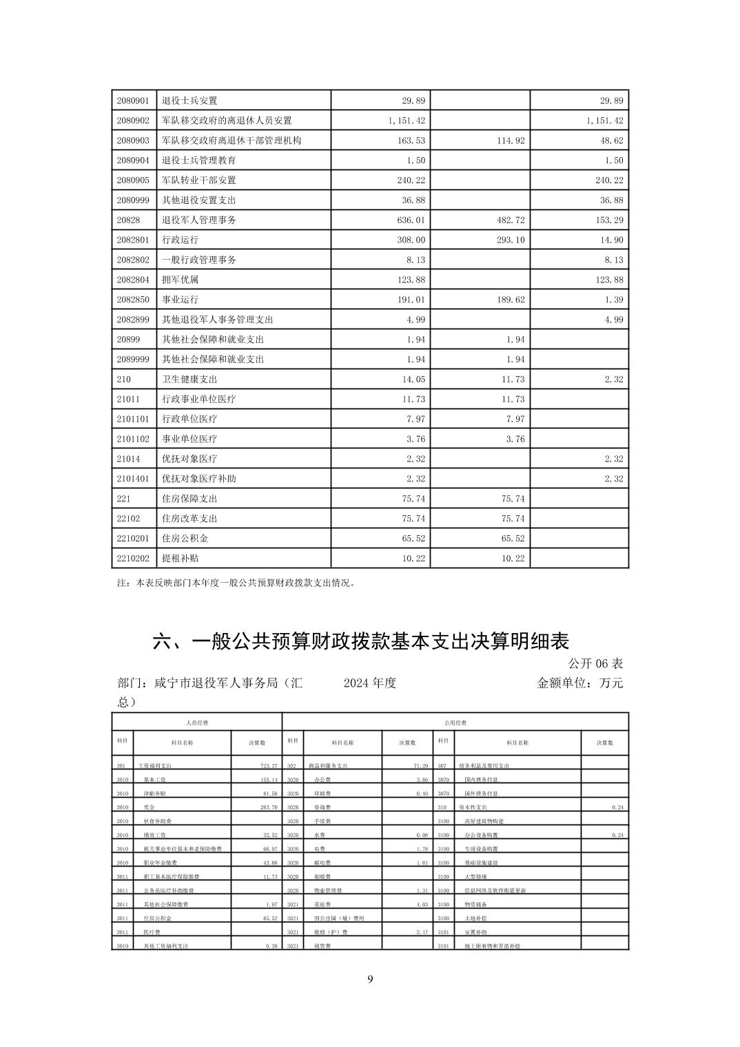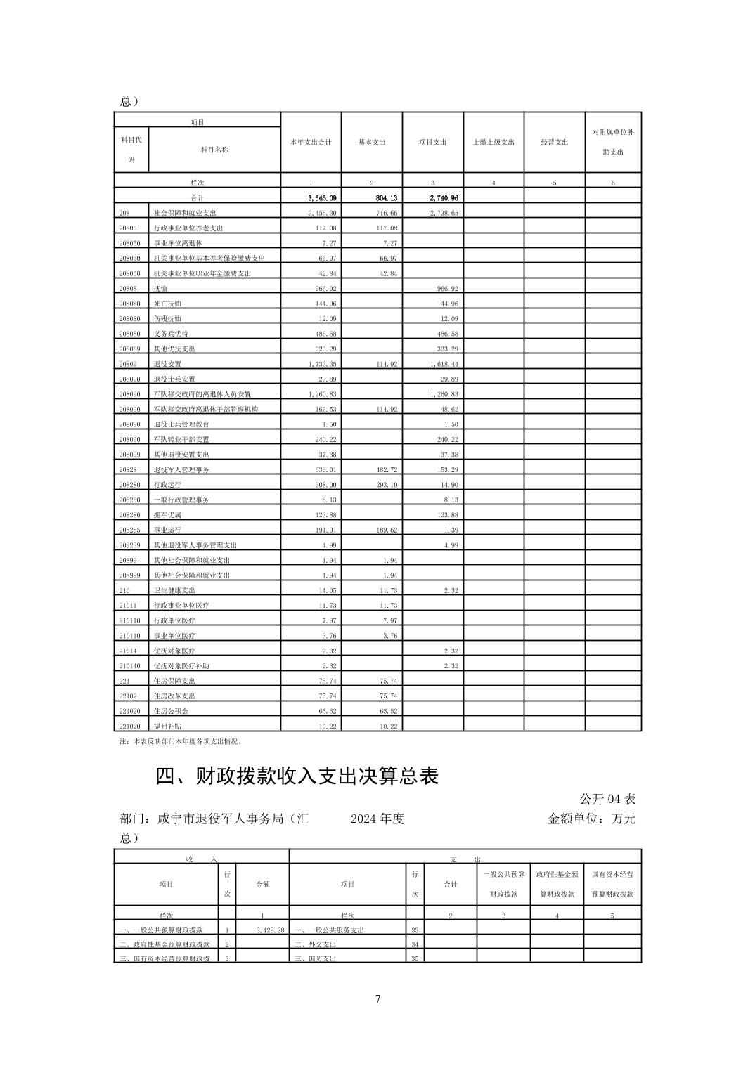 名       称: 咸宁市退役军人事务局(汇总)2024年部门决算公开 发布日期: 2025年11月01日