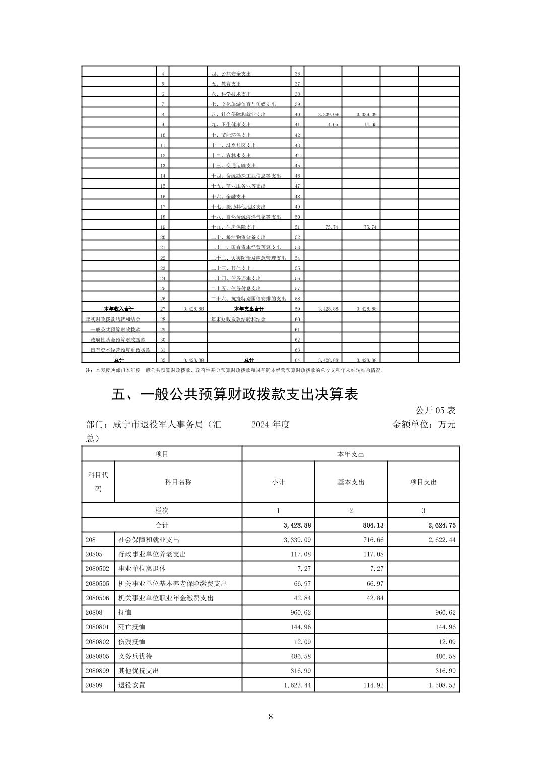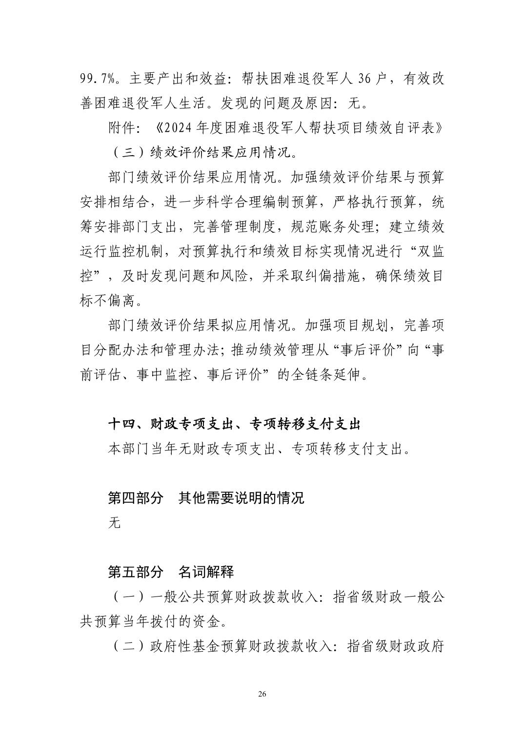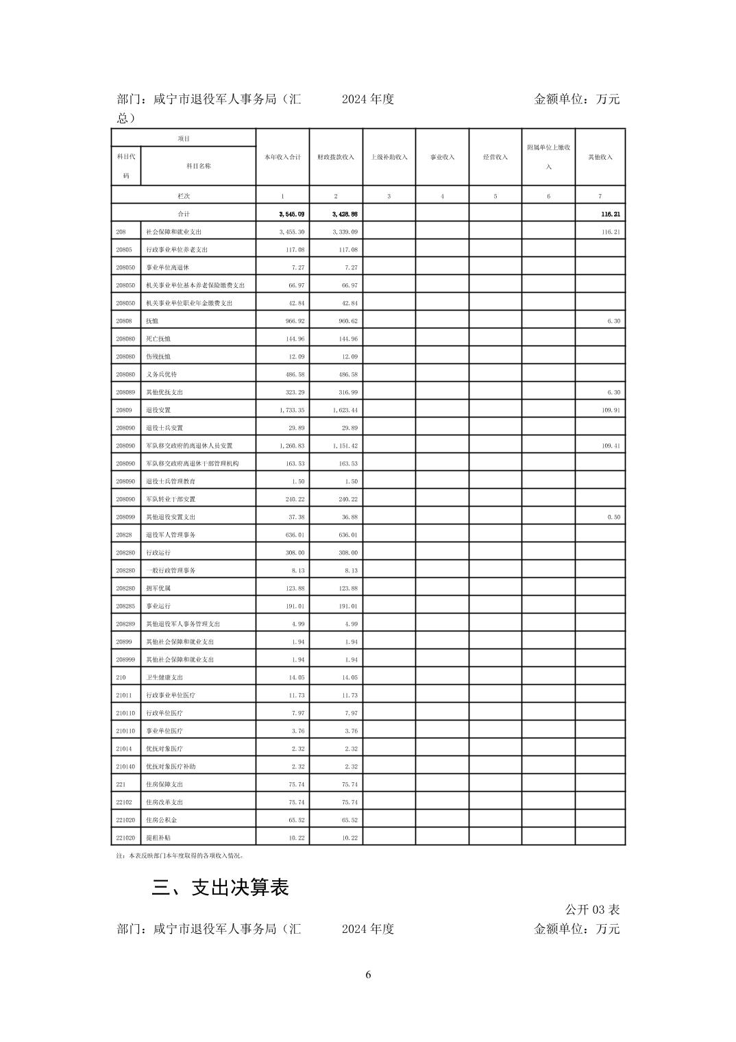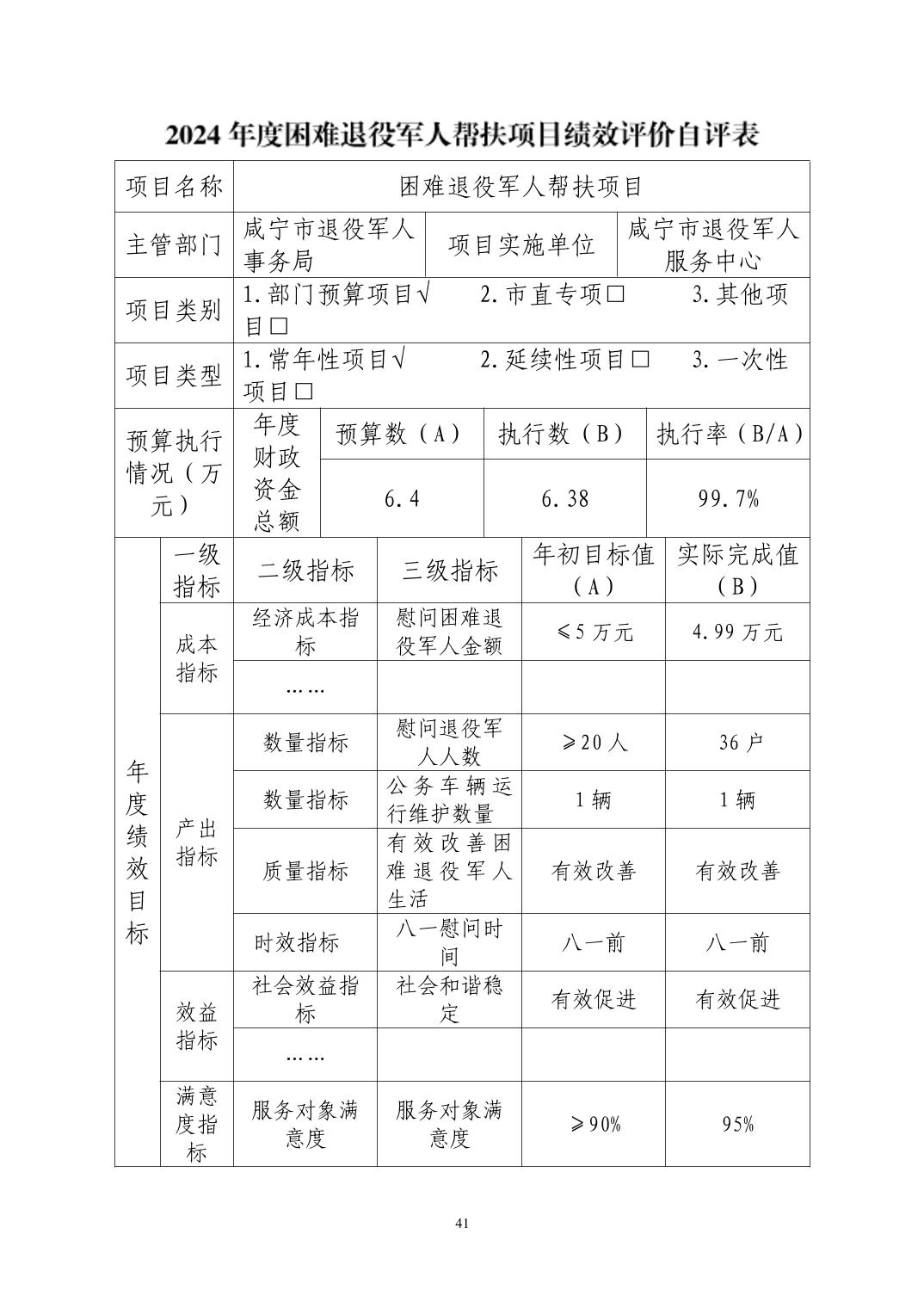 名       称: 咸宁市退役军人事务局(汇总)2024年部门决算公开 发布日期: 2025年11月01日