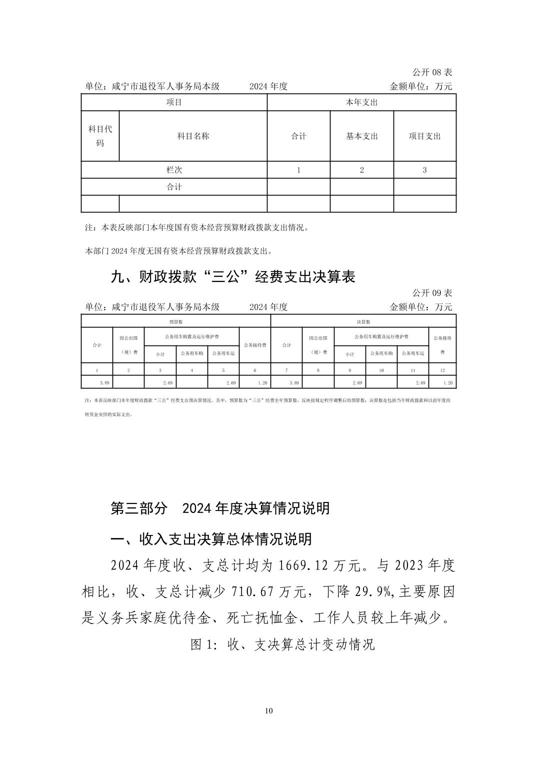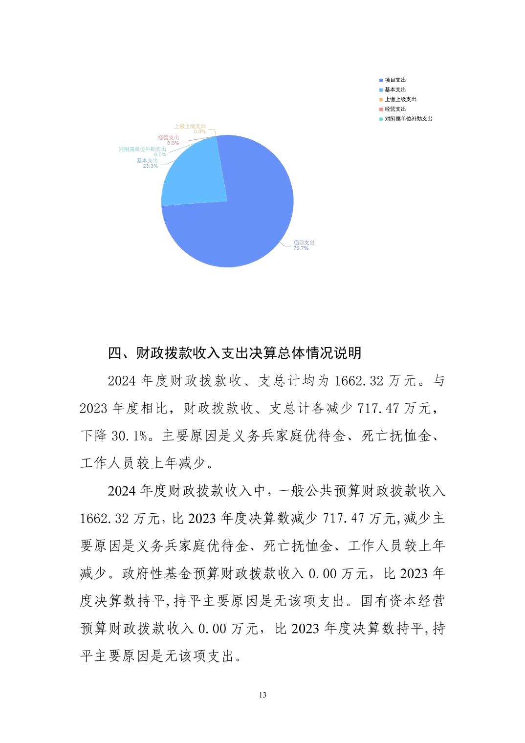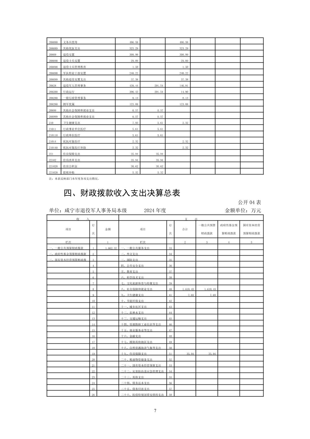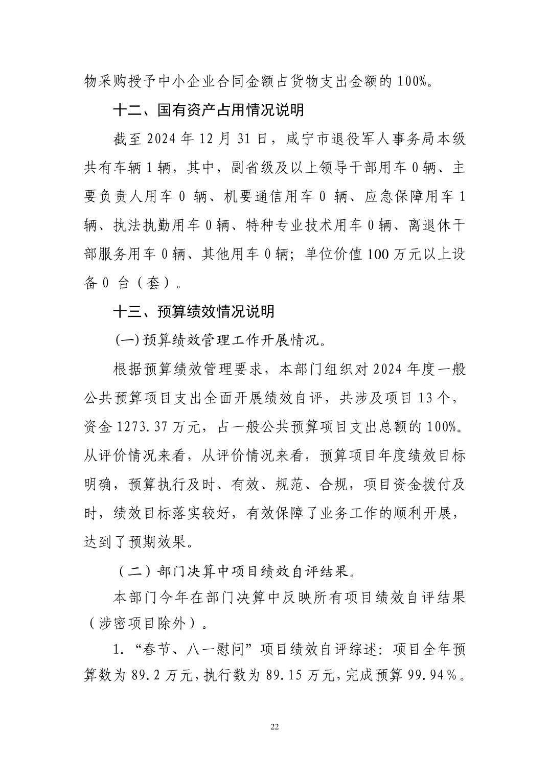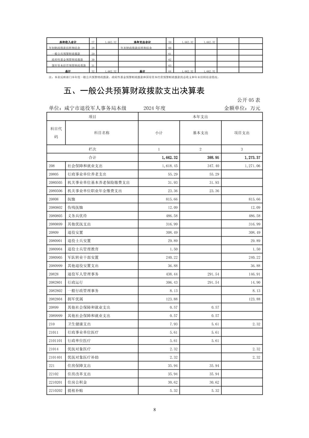 咸宁市退役军人事务局本级2024年决算公开