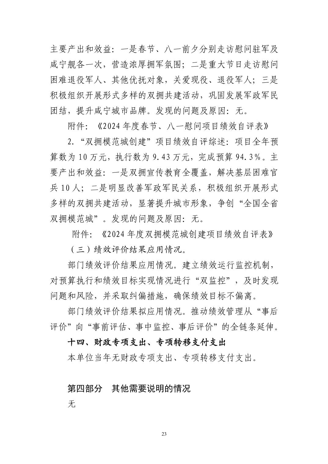 名       称: 咸宁市退役军人事务局本级2024年决算公开 发布日期: 2025年11月01日