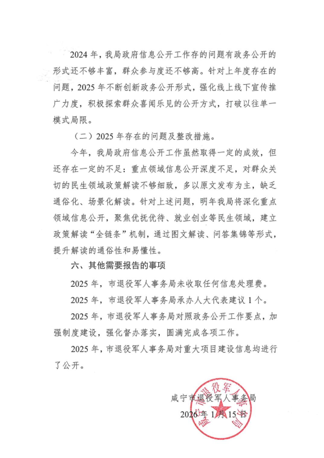 咸宁市退役军人事务局2025年政府信息公开工作年度报告