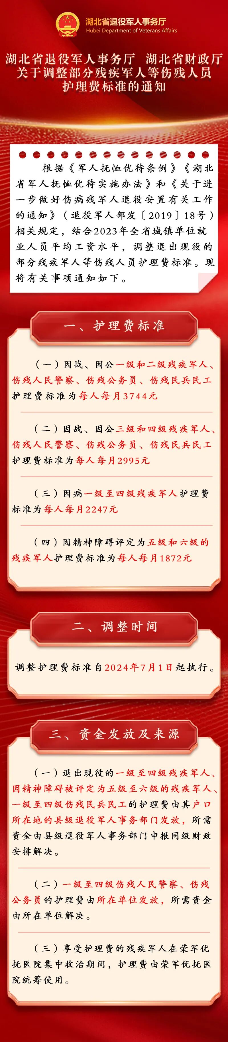 【图文解读】湖北调整部分残疾军人等伤残人员护理费标准