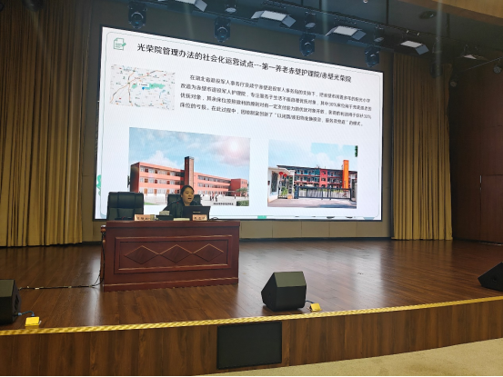 赤壁市退役军人第一养老护理院院长张亚玲在全省光荣院护理员培训班上发言讲解赤壁光荣院典型经验介绍