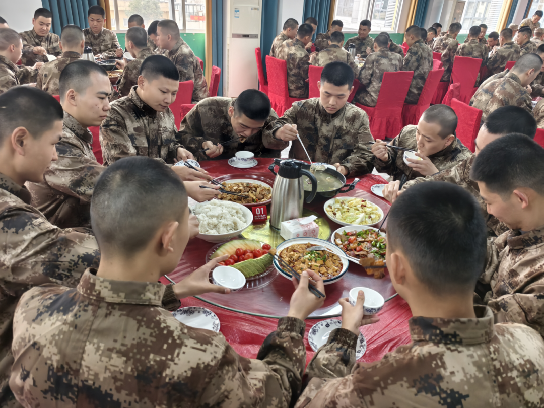 赤壁市军用饮食供应站是新兵役前教育训练的保障点。为高标准完成此次入伍新兵训练保障任务,赤壁市军供站提前规划,制定专项保障方案,对培训场地、宿舍、食堂等设施进行全方位检查和维护,确保设施设备安全可靠。在饮食方面,详细拟定热食餐饮方案,食材采购、熟食留样、全程细致把控,确保食材安全、制作卫生,除了标准的四菜一汤外,每餐还精心准备不同种类的水果;在住宿方面,赤壁市军供站对标现代化军供保障要求,近两年投入专项资金对住宿区域进行全面升级改造,打造了温馨的六人间士兵房,更换全新床品,营造了整洁舒适的住宿环境,确保新兵住得安心。每一个环节都落实专人负责,圆满完成了为期近二十天的保障任务。