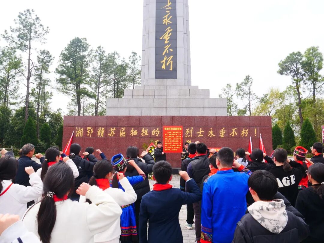 3月27日,崇阳县大集中学54名党员、团员、少先队员及其他师生代表来到崇阳县烈士陵园,在巍峨的烈士纪念碑前高举右拳,许下庄严承诺,拉开该校“缅怀革命先烈 传承红色基因”实践活动序幕。启动仪式后,学校组织学生开展网上祭英烈、为先烈写一封信、设计一张邮票、制作一片邮集、设计一张明信片、绘制一张手抄报等“六个一”系列活动,让红色基因在青少年心中生根发芽。