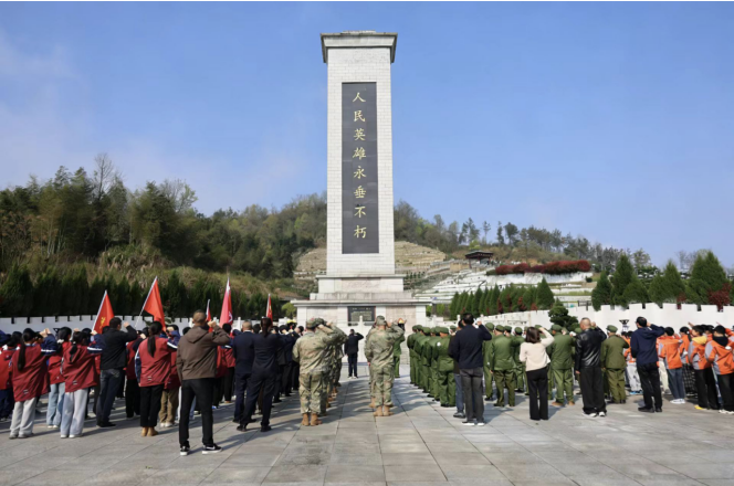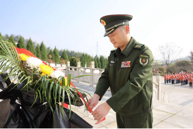 青山埋忠骨,史册载功勋。在清明节来临之际,为深切缅怀革命先烈的丰功伟绩,传承红色基因,赓续红色血脉,4月1日上午,通城县人武部联合退役军人事务局组织机关全体人员、退伍老兵代表、各乡镇专武干部以及关刀中小学、隽水中学师生代表共400余人,前往马鞍山烈士陵园开展“缅怀英烈功绩,强化使命担当”主题祭扫活动。