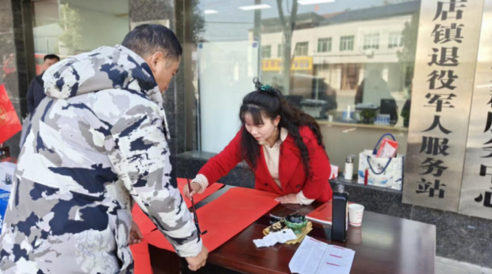 赤壁市退役军人事务局组织本地书法家和爱好者,现场为退役军人及优抚对象书写寓意吉祥、饱含崇军之情的春联和“福”字,再由工作人员和张富清老兵志愿服务队逐一送到服务对象手中,将“尊崇”二字化作看得见、贴得上的新春祝福。